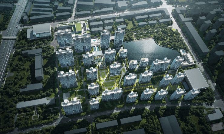 下沉会客区、观湖茶亭、冥想空间环绕内湖布置,相互对望,营造出多重情景体验。