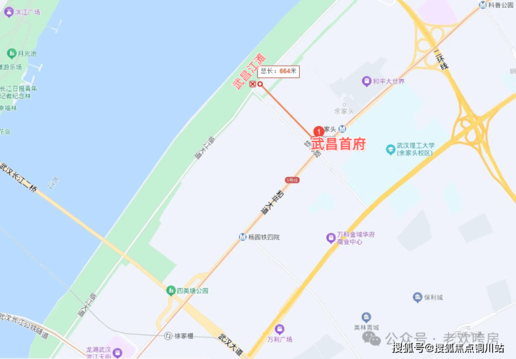 项目与武昌江滩直线距离约600米,其首开的A地块,2号楼高区部分户型便可看江。