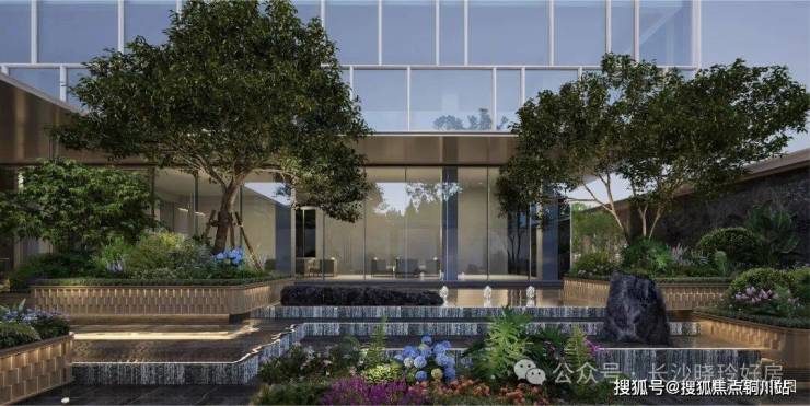 在沿袭当地文化的基础上进行审美升级,以“岳麓书院”为营造灵感,将森林理念注入场地空间,诠释全新绿色栖居。定制“一环两轴七境”园林,规划康体花园、轻氧花园、童乐花园等,让人与人、与自然美好链接。