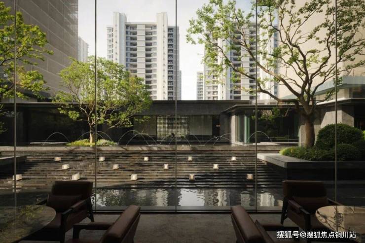 在有限的内庭院中塑造人工高差的半山半水,营造柔软的景观视线屏障,打造园境水院内盒。收放自如的空间形态,给人应对自如的自由形态,功能、绿意、水景,所有自然质感无界交融,形成一种高级的生活智慧。