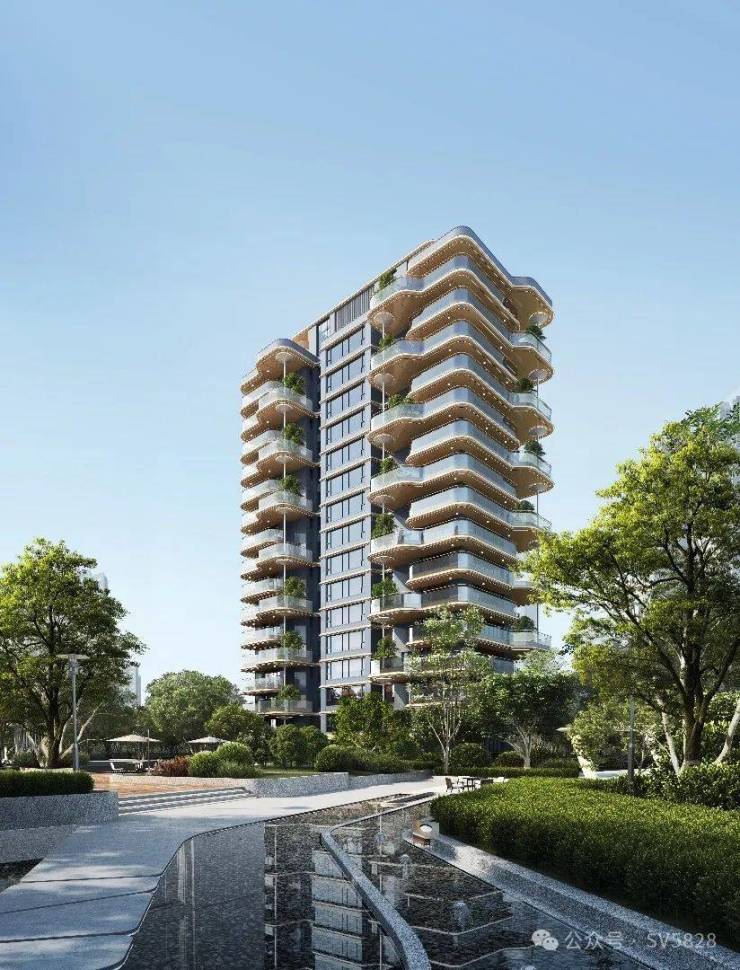 【特色】玻璃幕墙+金属铝板+石材+空中花园露台