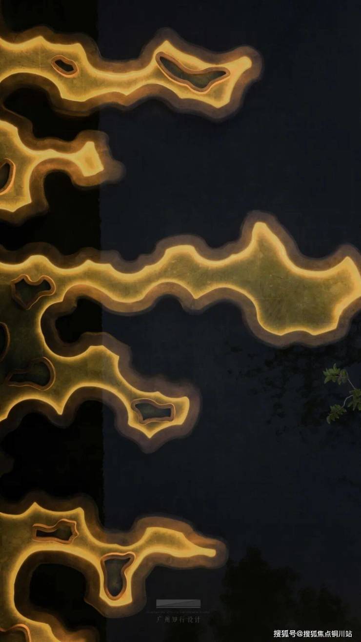 夜间,隐于石阶下的暖色灯光悄然亮起,