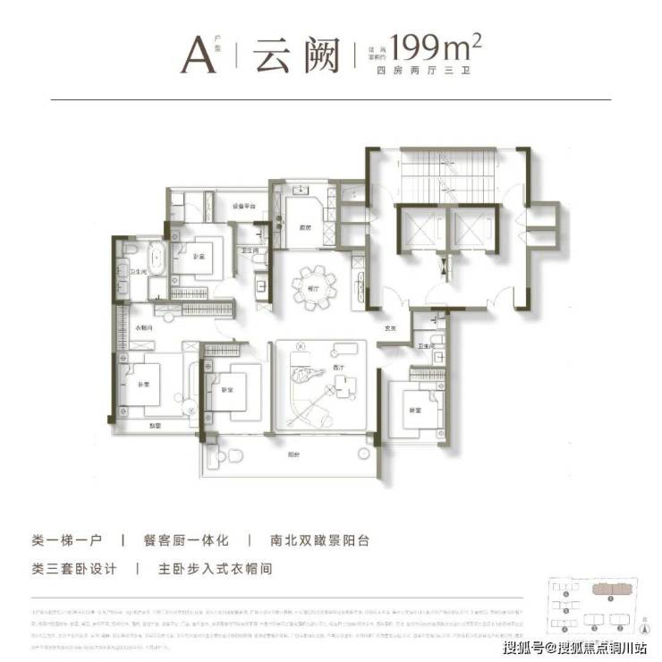 高层均为建面约199㎡的大平层户型,极致纯粹的业主圈层,带来更为尊贵的居住体验。其户型设计尽可能扩宽南向开间的同时,展现出了极为阔绰的空间尺度,足以满足多代同堂的居住需求,成为众多购房家庭终极改善的首选。