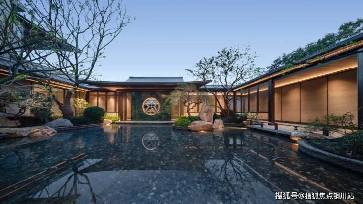 采用“王府中式”设计,大门为歇山顶形制(宽53米、高近11米),配黄铜狮、罗汉松及蓝翡翠奢石。园林融入西湖十景元素,如“花港观鱼”水景、“柳浪闻莺”绿植,并设雾森系统首层单元门厅石材铺就,肌理沉稳。