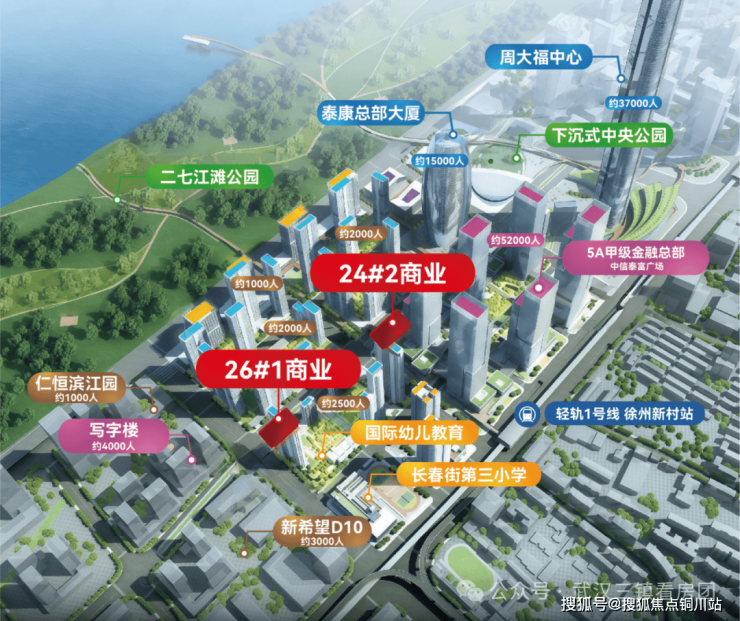 滨江商务区在售项目十余个,住宅价格5-8万元/㎡不等,起步近千万的置业门槛代表着武汉乃至华中地区最高消费力;已建在建高端写字楼约25座,整体体量约为220万方,按目前写字楼人均办公面积10㎡换算,将会有超过22万行业顶尖精英汇聚于此。