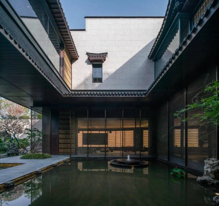 隐山项目从无锡世家的择居智慧中提炼出"运河水岸居,秋光园中寻"的核心设计理念。借寄畅园五十景图为空间原型,设计不同主题的园林重现画中空间。把园林的移步异景,借景,漏景,对景等手法用的恰到好处。