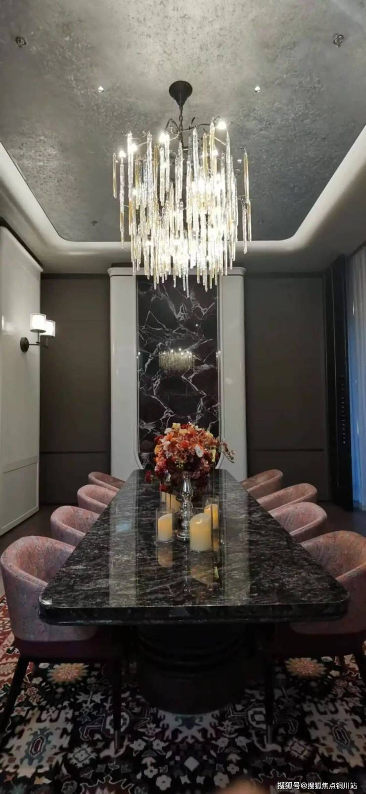 苏州首个半岛酒店式车马院,高约6.3米、鎏金格纹重顶车库,随动灯光、艺术玄关、水磨石地面、金属格栅吊顶...引领豪宅归家排场。