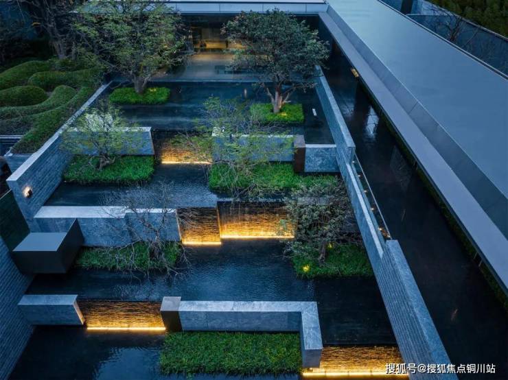 这个是下沉式庭院的跌水景观,层次太棒了,森林秘境的感觉扑面而来!