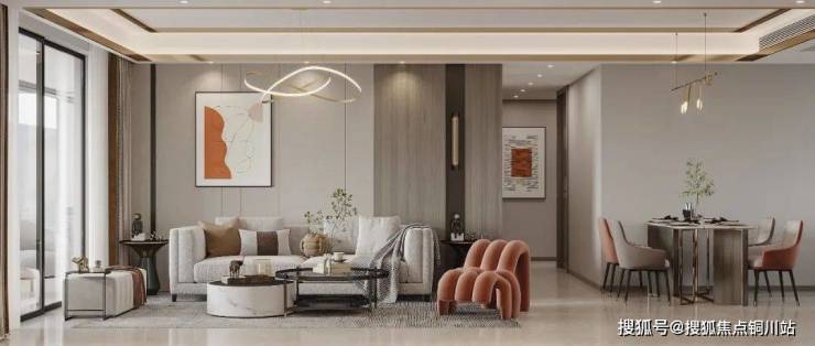 92㎡明星三房,连通了阳台、客厅、餐厅、厨房等功能场所,形成了一处约29㎡派对式家庭公共活动区域,餐客一体、拓宽进深的客厅空间,让舒居生活在每个角落里演绎,无论会客欢聚,家庭团圆都能彰显主人品质生活畅享宽厅带来的尊贵格调。