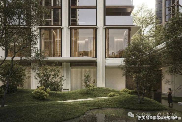 会所环绕着中心水苑展开,泳池、健身、瑜伽、私宴与茶室都被包裹在其中;连地下空间也被赋予自然的渗透,约30米面景的中央车站大厅,将光与绿意引入地库,让归家像步入一座埋入自然的殿堂。