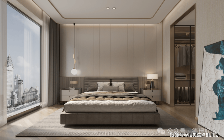 ◎豪华套房式主卧 | 约52㎡套房主卧,用空间上的雍容匹配主人身份标签,配以瞰景阳台、衣帽间、独立卫浴,诠释奢华舒适的居住体验