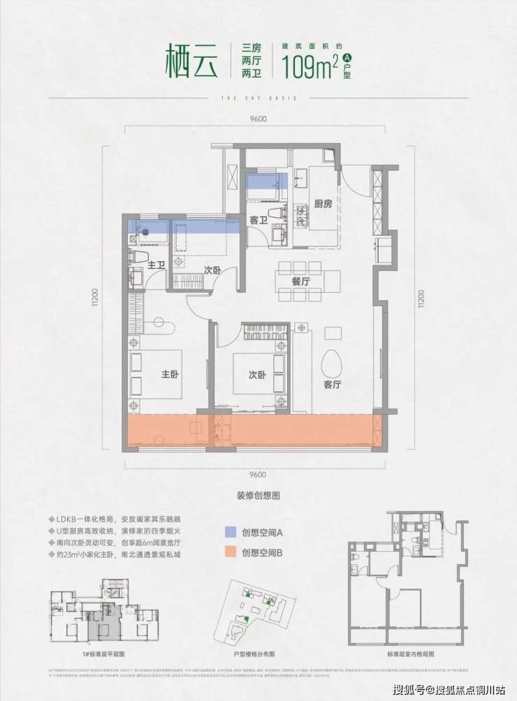 109 平户型:南向立面整齐,约 9.6 米开间的阳台空间,其中一半为赠送面积,超划算!还有飘窗,增加空间感。主卧面积约 23 平,宽敞舒适。