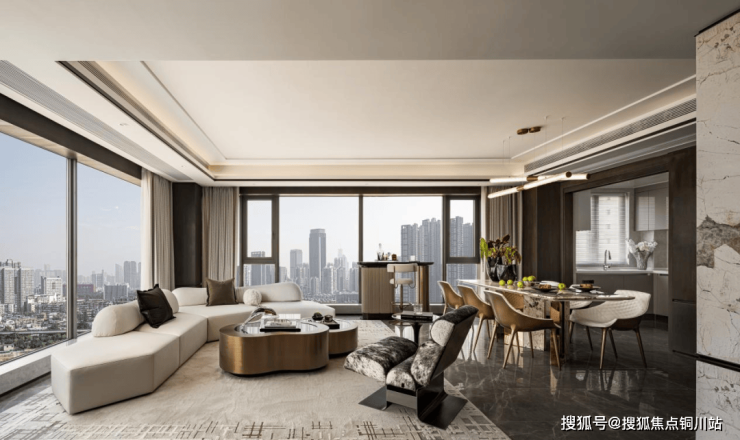 夏日黄昏,漫步于汉江江滩,一道绝美的“雪山金顶”天际线初露真容。天创坦达·月湖云庄的设计师将梅里雪山日照金顶奇观融入建筑美学,实现独特视角冲击。建筑整体色彩偏中性,使用米白色仿石涂料,质感细腻时尚。汲取汉江江水灵韵,让富有韵律感的线条凸显立面的动态美。选用LOW-E双层中空玻璃,让室内明亮通透、冬暖夏凉,居家更舒适。采用高端住宅标配的类公建化外立面,在质感上与周边传统建筑区隔,呈现出“和而不同”的尊贵气质。