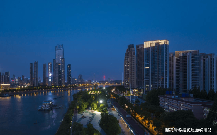 项目完美地融入滨江建筑群之中,远远望去,由银灰色的铝板、澄蓝的玻璃幕墙、烫金色的建筑顶端构成的“雪山金顶”与江水、天空交相辉映,勾勒出璀璨动人的沿江天际线,成为擎领滨江的焕新封面之作。
