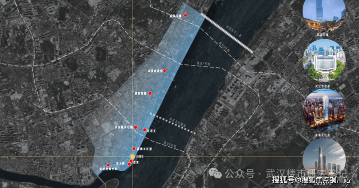 区位来看,这两个项目处于武汉内环,长江与汉江交汇处。西边是汉口起源点龙王庙,东边是华中第一步行街江汉路,与南岸嘴、长江大桥黄鹤楼隔江相望,其地段价值毋庸置疑。