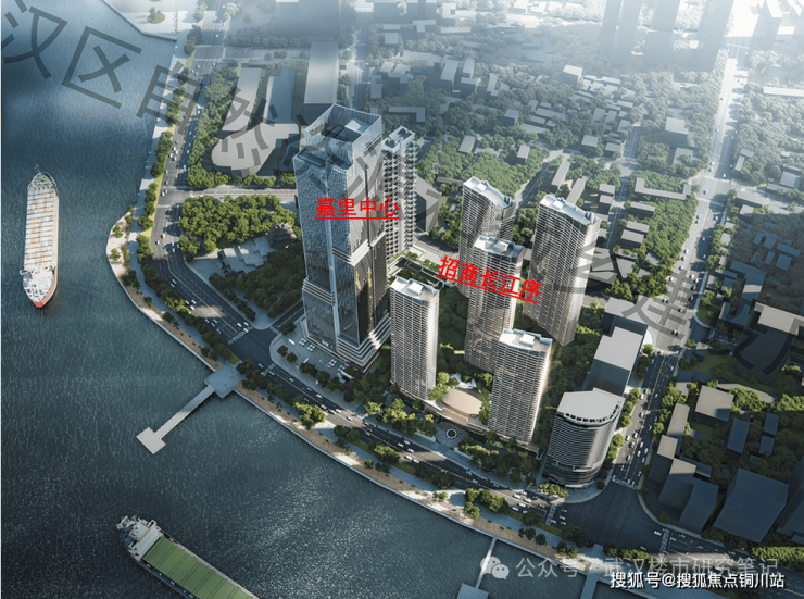 右侧5栋沿江排布的住宅是招商长江序。