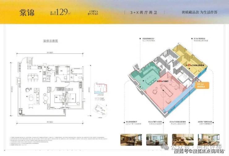 空间体验上,约9.2米的“跑道式”宽境阳台,近64平的LDK一体化厅堂,创造出奢阔的动区空间;约25平的行政级主卧套房,即使放2.2米的大床空间都绰绰有余;