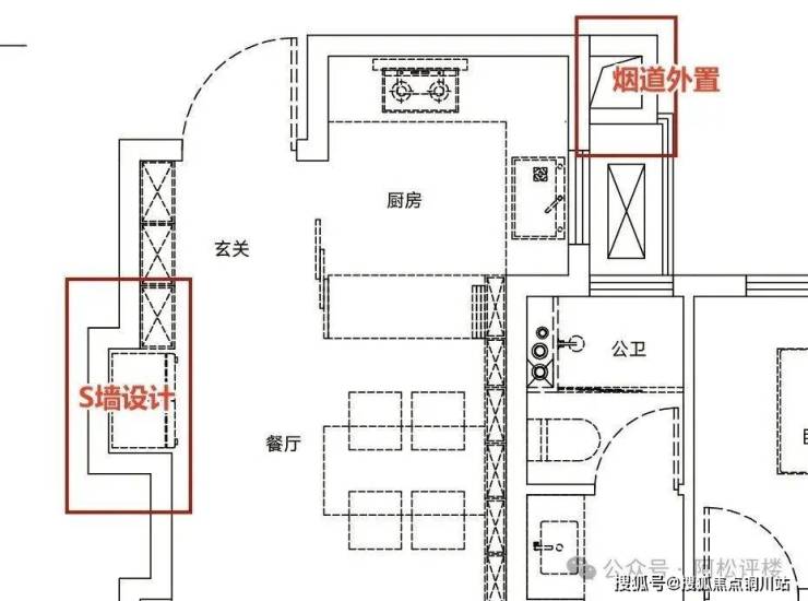 再次,玄关处S墙设计、部分户型烟道外置、更少的承重墙等,业主可根据不同需求设计不同的居住方案。