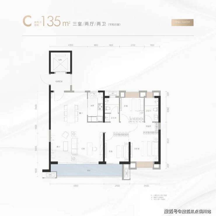 三面采光,南北通透,再加上南向景观大阳台,搭配大面积落地窗,十足的豪宅既视感。