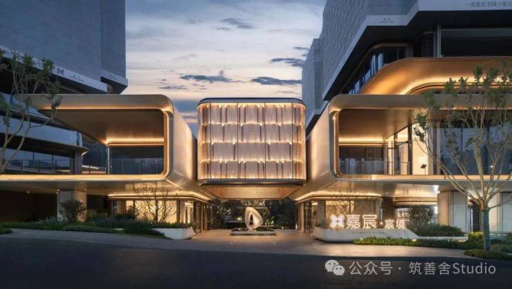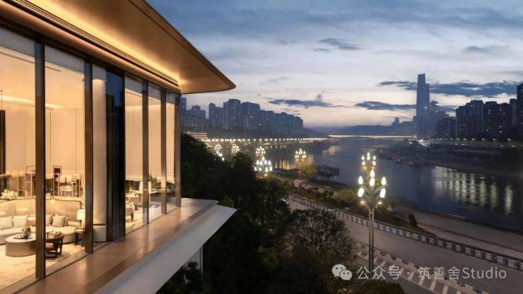 立面设计元素上嘉宸提炼滨水豪宅的建筑艺术精华,巧妙融合嘉陵江水的流动之美。其建筑以270°环抱式曲线立面,展现出柔和而流畅的线条,与北滨路头排的江水交相辉映,为两江四岸风光增添无限艺术魅力。