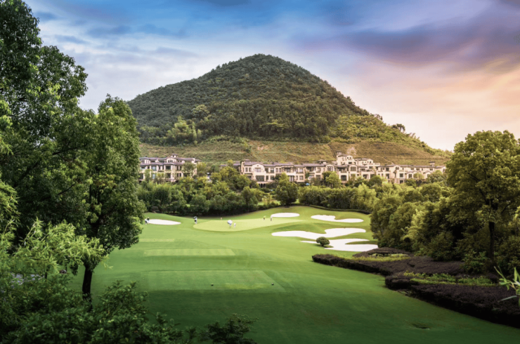 溪流自山间溯流而下,分岔为细碎的溪涧、池塘,蜿蜒穿过整个球场和社区,让这座由美国JMP首席设计师马克·霍林格依原生地势而建的千亩球场,与连绵的群山和熠熠的湖泊相依而立,不负自然馈赠的土地禀赋,创造出独属于高尔夫的天堂,荣获中国百佳高尔夫球场第17名,被评为十佳高尔夫社区、十佳度假球场,成为球友们公认的“江南醉美球场”。