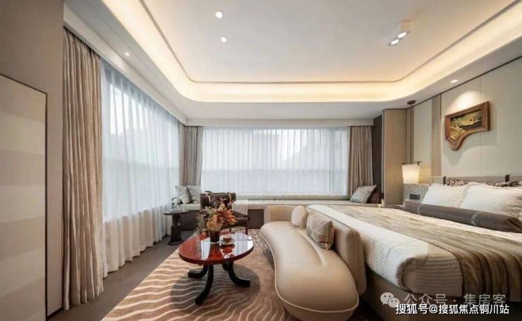 同时,不仅餐客厅有着约7米的落地门窗,书房与主卧还都坐拥270°采光面,任由晨光与暮色在家中流转,也撑起了豪门大宅的自信气场。