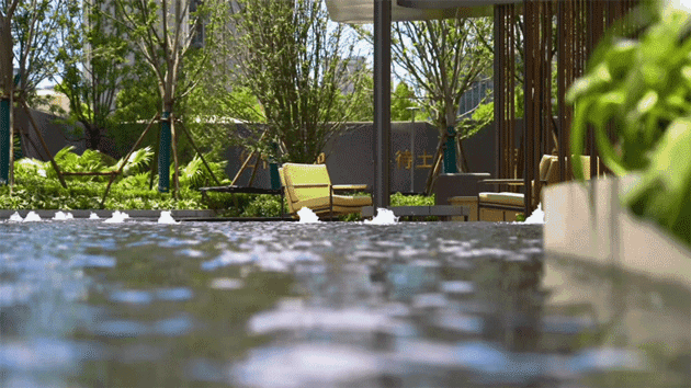 区别与普通小区喷泉、条状的水景区域,仁恒·紫琅世纪南北地块共约5000㎡阔绰中庭、景观廊架,以超大镜面水景作为主导,真的太震撼。