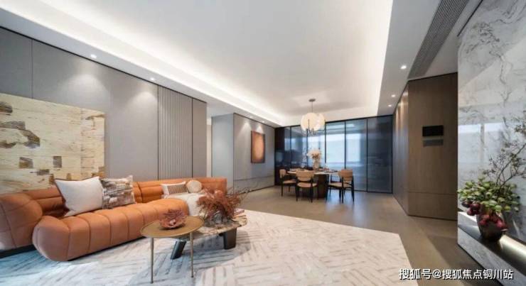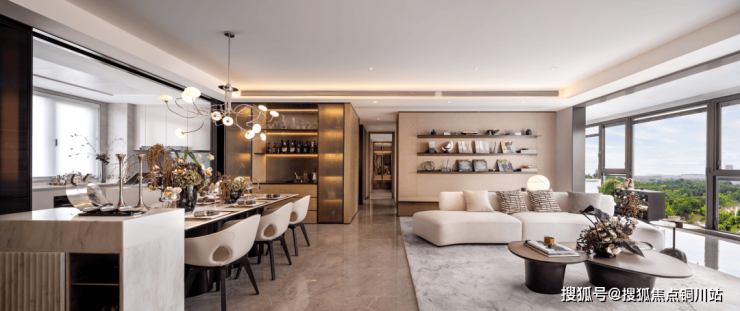 LDKB一体化设计打破空间界限,把家庭核心功能区间有效串联,客餐厨一线贯通,连接观景阳台,空间感达到max级别。