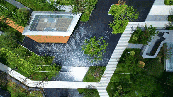 行走在整个小区,颇有种以水为轴、水映归途的意境感。