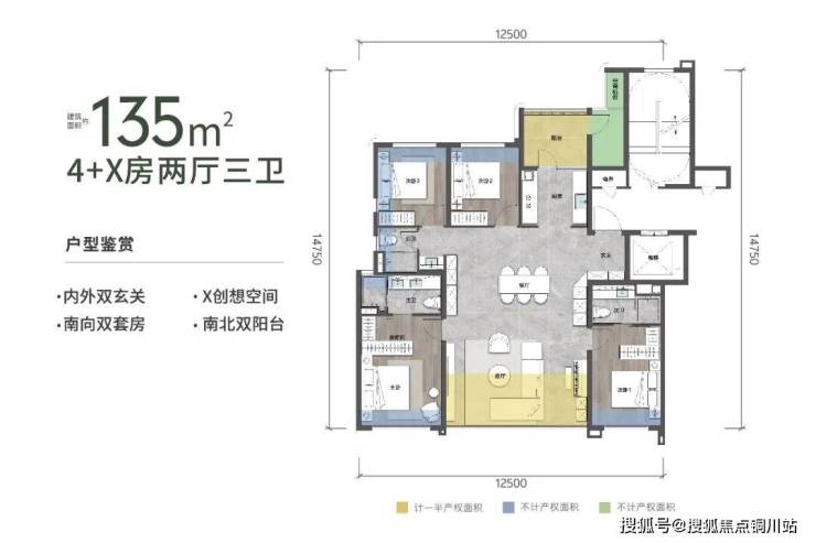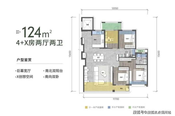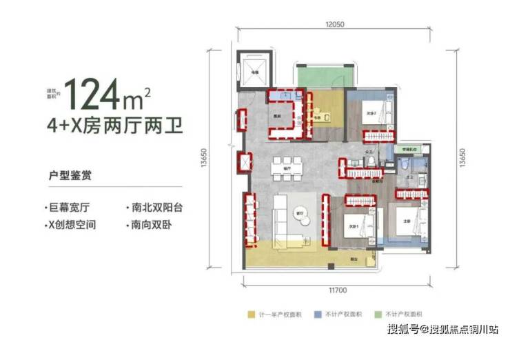 以建面约124㎡4+X房两厅两卫产品为例,完全在有限的面积段,做出了豪宅的尺度!