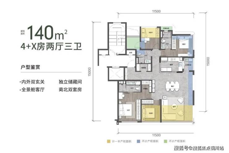 即便不算电梯前室,纯算套内空间使用率也超过100%,完爆市面上大多数四代宅。