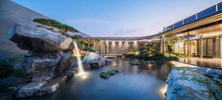 一条游廊贯穿其间,侧面的水光树影将你引向归家大堂,廊下转角的奇石和风景暗藏惊喜。