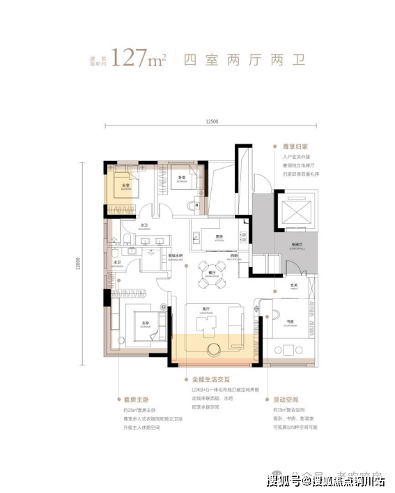 >>>建面约127㎡入门级超级准四代:以高定配置重新定义入门户型价值