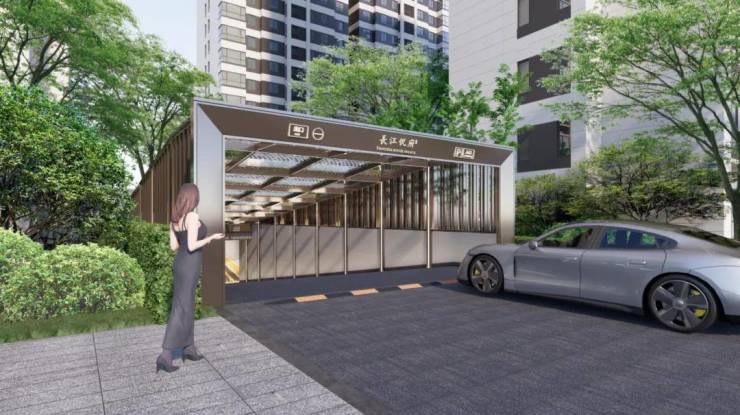 临近交付,长江悦府却不惜成本,在地库入口增加雨棚等,让这个容易被忽视的灰空间,也没有放过升级的机会。