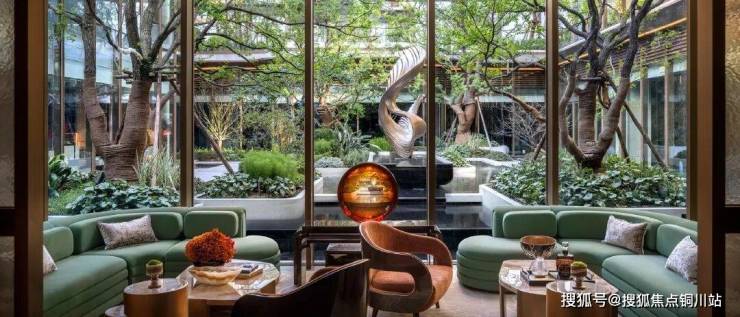 下沉式庭院以水景为底色,再配以特色树种、艺术雕塑、水间步道等,极为惊艳。