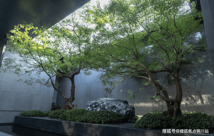 可以看到,府门以进口“蓝眼睛”花岗岩筑基,镀铜大门由非遗匠人锻造;建筑外立面则采用蓝宝石石材干挂,光影中尽显质感。门侧百年黑松苍劲迎宾,园中乌桕、朴树、鸡爪槭等名贵树种错落有致,共同绘就一幅可生长的立体生命画卷。