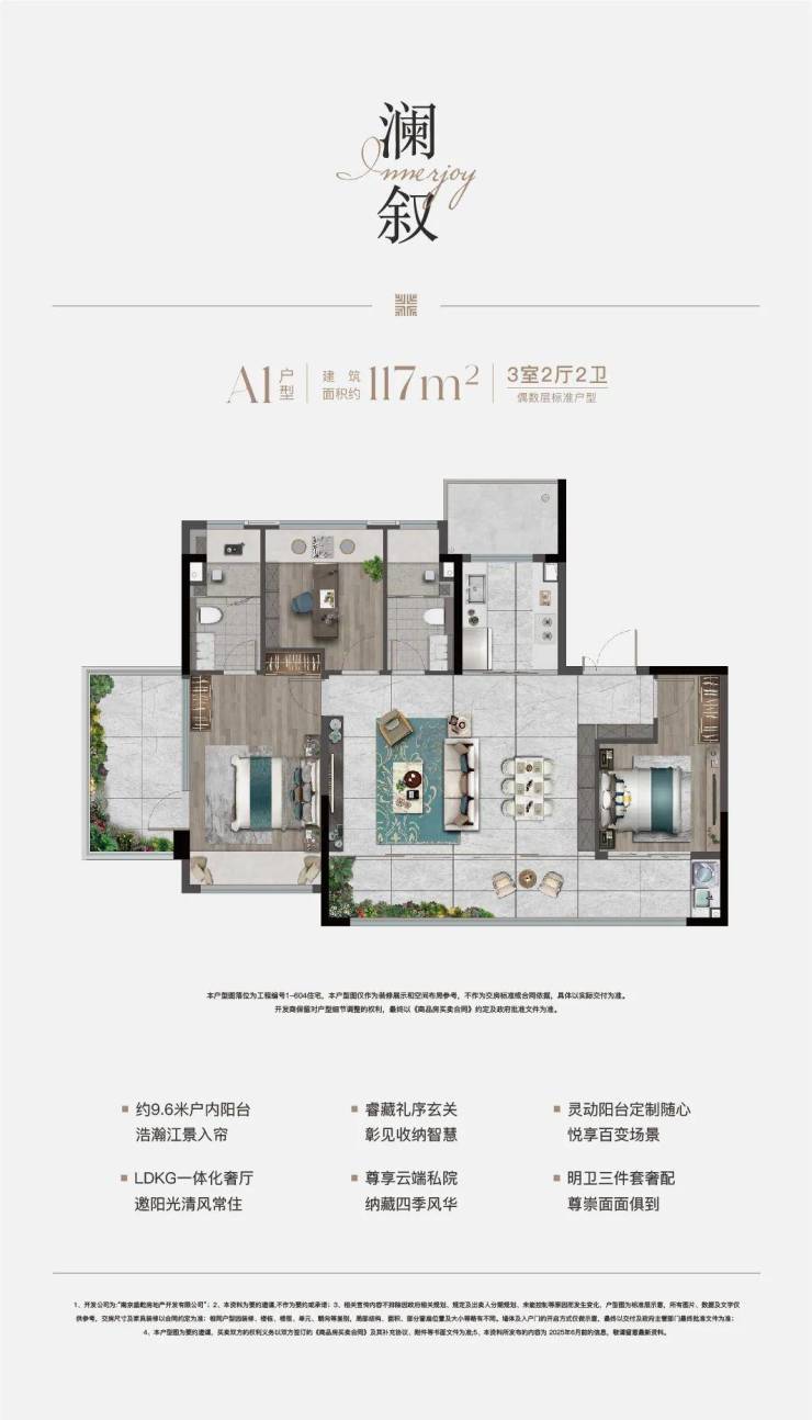 江韵瑧悦·瑞园整盘都是建面约117㎡户型,有着阳台、露台、飘窗等N处赠送空间,加在一起的实际使用面积能够接近100%。