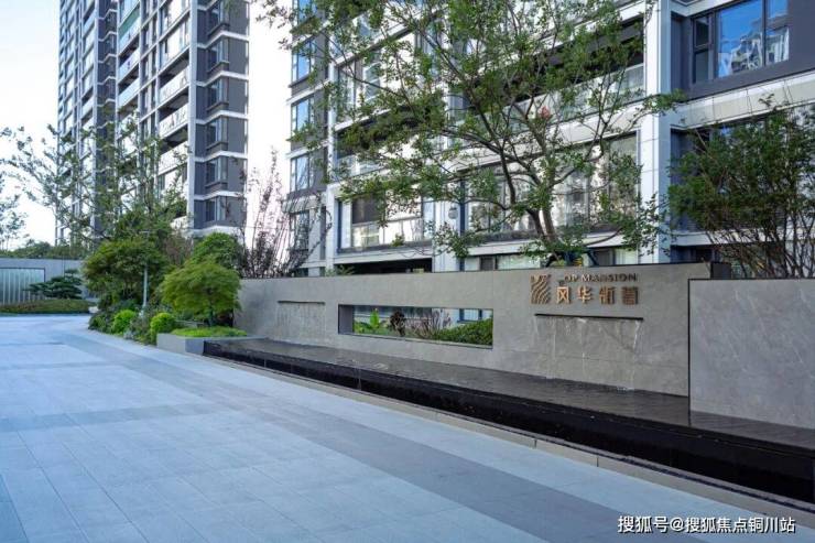 恢弘气派的门头搭配仪式感十足的置景,烫金字体印刻着风华瓴著与楼栋门牌,低调地静候业主归家。
