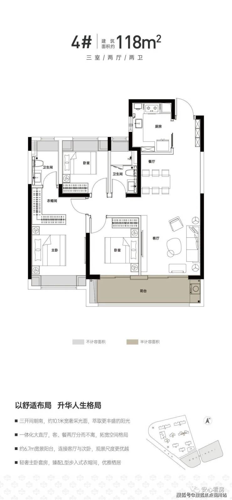 约6.8米宽双联阳台,约5.4米宽客厅落地窗