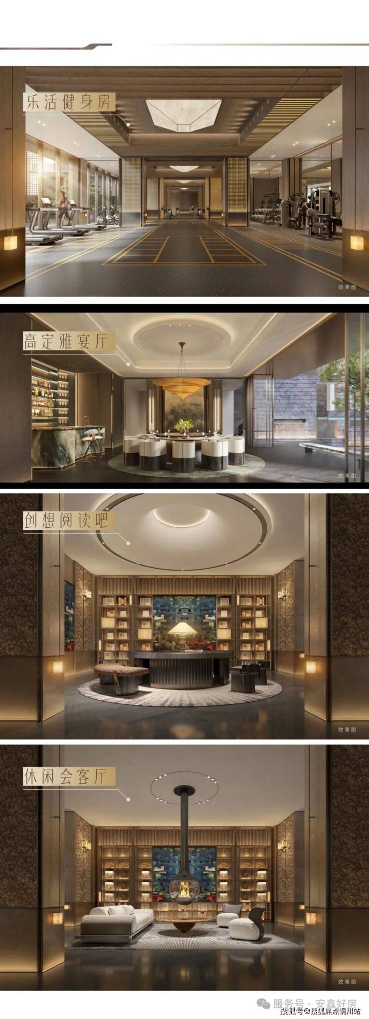 打造高定酒店式社交会所,包含健身房、阅读室、私宴厅、会客厅等: