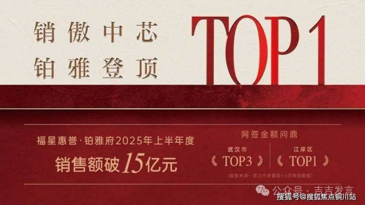 2025年1-6月住宅销售网签金额居武汉TOP3、江岸TOP1,上半年度销售额破15亿,实至名归。