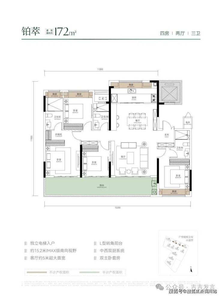 极致洋房:奢阔大四房,跑道级阳台、LDKG一体化超厅、超90%高得房率