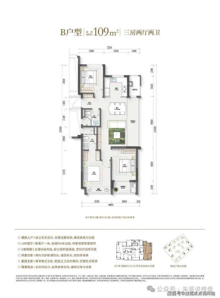 106㎡实现四开间朝南,南向面宽达12.5米。