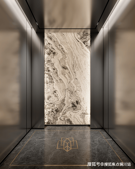 从底部延伸至顶部的铝板电梯厅,以及大面积大理石和大面积金属包装的电梯轿厢,不放过任何一个归家动线上的奢华体验。
