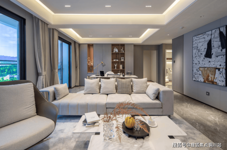 客厅足足被拉宽2米,什么概念?从容放下一张“3+2”座沙发,还能放置一张实木长条桌,摆上精致茶具,品茗、会友,将悠闲融进这方天地。