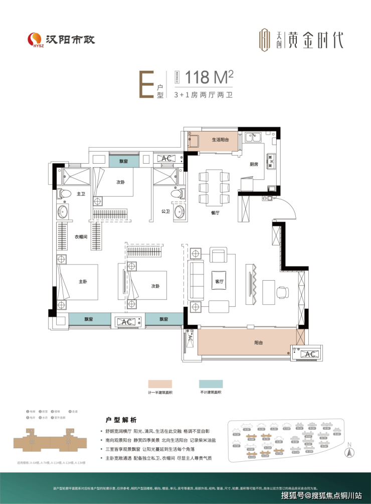 这个118㎡的户型,3+N的布局,双阳台设计,主卧通透套房,步入式衣帽间,大U型厨房,南向超6米的阳台……这是130㎡的高层都很难做到的尺度,妥妥安放一家三口的日常。