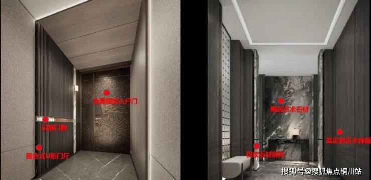 从前场入口到酒店式大堂再到建筑内部,通过岩板铜雕长江之门、山水格栅、水幕屏风、康莱德酒店风格大堂、33种稀贵植物造境、大师落款“浪涛”雕塑等缓缓铺开,往来塔尖的礼序奢域,尊崇归家的每一步。