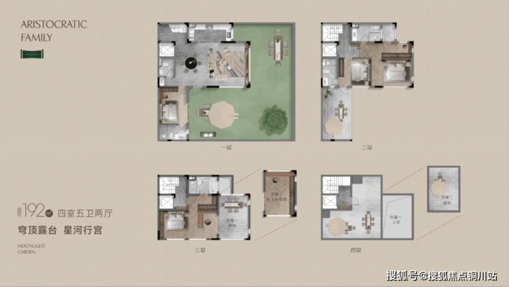 项目精心规划了约192㎡、215㎡、266㎡三类合院产品,其中约192㎡与约215㎡为三层布局,约266㎡为双层设计。
