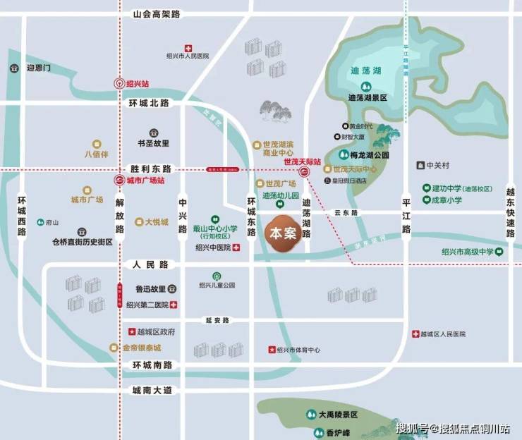 南瞰世界遗产浙东运河,西倚环城河,北望迪荡湖、梅龙湖公园。