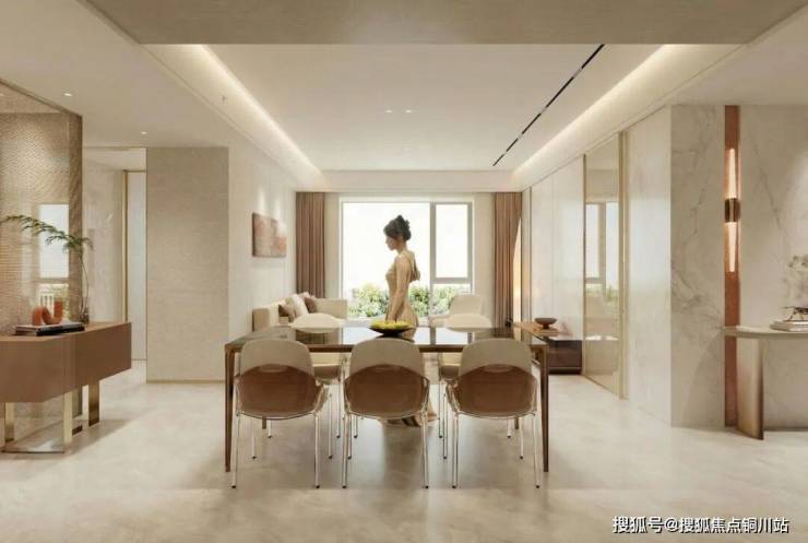 进门后,阔绰客餐横厅横向舒展,通透开阔的格局,让相聚更有温度。亲戚来聚餐,十几个人坐得开;周末朋友带孩子来,客厅是游乐场,餐厅是茶话会。进门有仪式,聚会不局促,这是给多代家庭的第一重体面。
